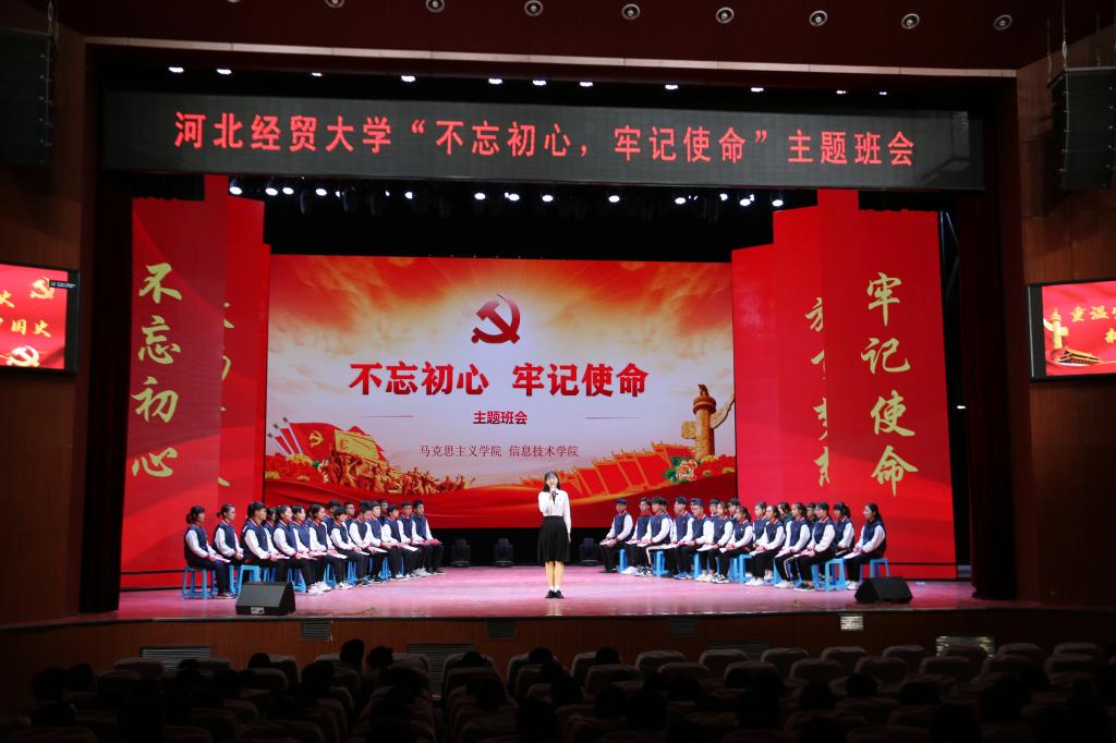 主题教育班会采用视频忆、教师讲、员工颂等多维度立体式现场互动学习,每一个板块主题鲜明,催人奋进,师生们声情并茂、慷慨激昂,富有极强的感召力,现场气氛热烈,掌声雷鸣,达到了全体师生情感认同和思想升华,加深了广大青年学子对中国共产党人“初心和使命”的了解,更加坚定了广大青年学子永远跟党走的信心和决心,进一步增强了学习党史和国史的热情,掀起了深入学习贯彻习近平新时代中国特色社会主义思想的新高潮。