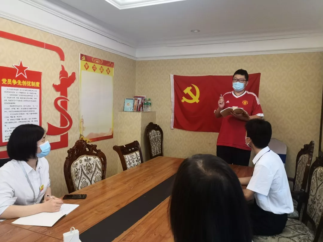 图为吴行苇在为河北万拓体育产业集团党支部解读习近平总书记七一重要讲话精神(中国青年网通讯员 翟玉 摄)