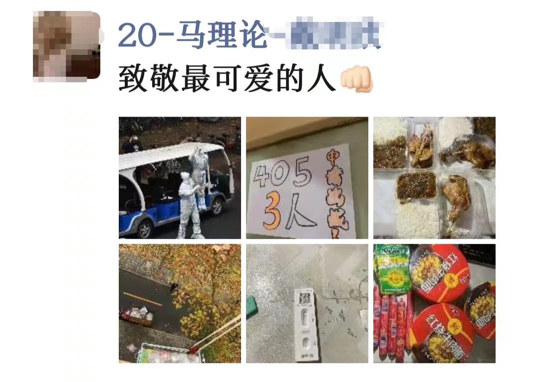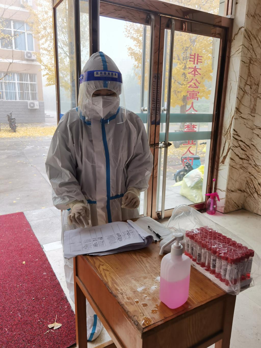 “抗击疫情,马院老师们服从公司党委统一领导指挥,冲锋抗疫志愿者队伍一线,赵志浩、赵立永、李雪飞、尼莎和我做‘大白’负责采集核酸信息,马鑫、周献术、董越深入员工宿舍做楼层长。危急时刻,在校每一位老师都挺身而出,守护经贸莘莘学子。经贸加油,战疫必胜,共克时艰。”