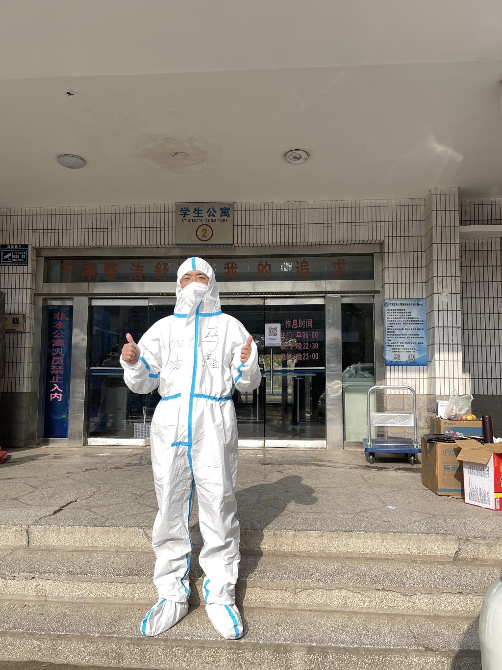 “以前总觉得病毒离自己很远,没想到疫情突降周遭;以前无法体会‘大白’的辛苦,今天是真切地理解和感受到了他们的不容易;以前总觉得当志愿者很轻松,穿上防护服做上志愿者才真正明白当志愿者是一种责任和担当!虽然疫情正在肆虐校园,但我相信有我们全体经贸人的齐心协力,戮力同心,就一定能战胜疫情,早日驱散病毒阴翳!加油!经贸人!”