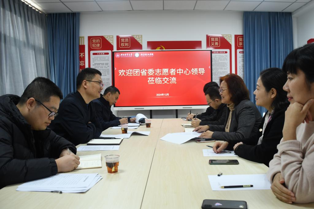 12月27日上午,共青团河北省委青年志愿者中心主任李永红、副主任王军朝等一行3人莅临l9193永利,围绕青年志愿服务工作开展调研交流,经理李英、党委副书记刘志峰、教师代表胡俊苗、周娜、陈恒等出席交流活动。