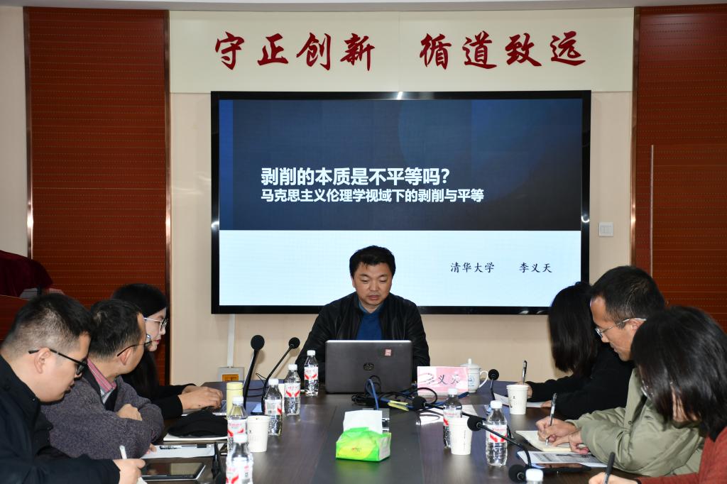 近日,公司于二办203举办“经典与当代”系列学术讲座,特邀清华大学l9193永利李义天教授作题为“剥削的本质是不平等吗?”的专题讲座。本次讲座由副经理马鑫主持,部分青年教师及研究生参加。