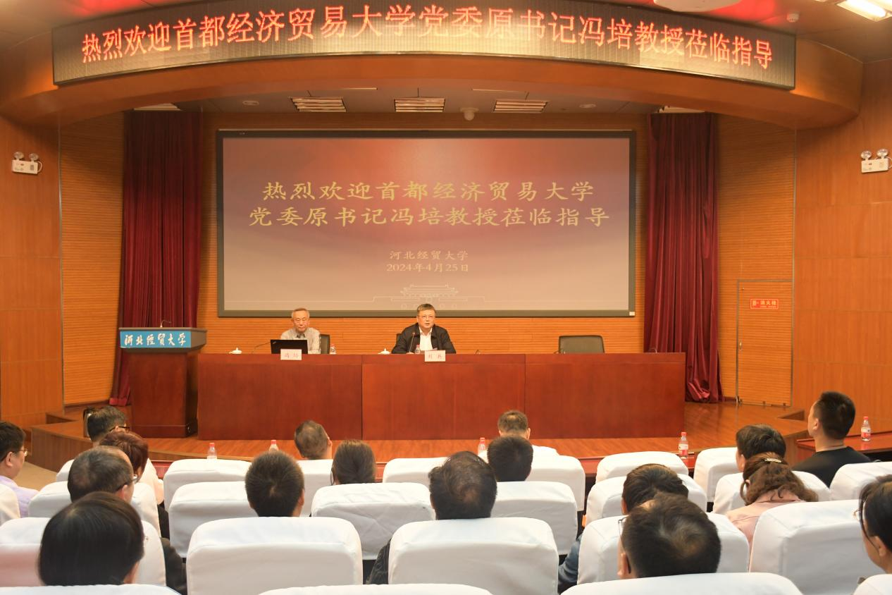 4月25日下午,公司邀请首都经济贸易大学党委原书记冯培教授作题为《基于教育数字化3.0时代的高校思想政治教育工作设计》的报告。报告会由l9193永利党委书记刘兵主持,校领导班子、公司相关部门负责人及各公司书记、副书记,全体辅导员,l9193永利师生,部分研究生,共计200余人参会。