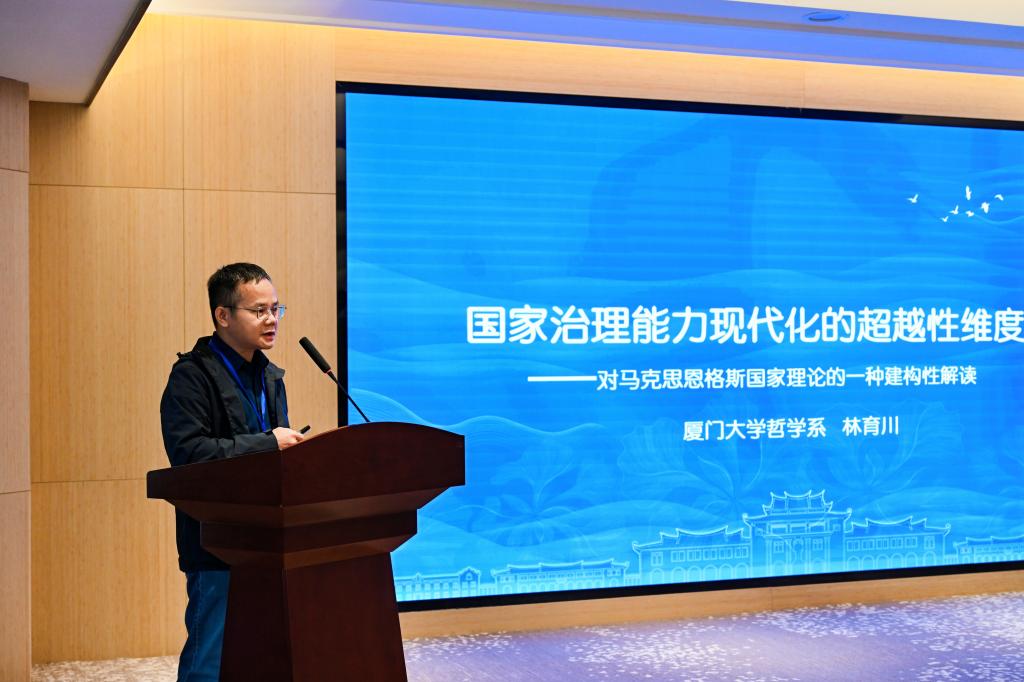 林育川教授在“国家治理能力现代化的超越性维度——对马克思恩格斯国家理论的一种建构性解读”的主旨发言中,分别从中国式现代化语境中的国家治理能力现代化、何为国家治理能力现代化的超越性维度和马克思恩格斯政治哲学的建构性维度三个方面,深入阐述了马克思恩格斯的国家理论与国家治理能力现代化的有机统一。他认为,国家治理能力现代化的超越性维度包括三点:第一,依法治国的超越性维度;第二,社会主义民主中的超越性维度;第三,国家治理现代化的经济(民生)目标不是分配上的平等主义,而是超越平等主义的共同富裕。基于此,他提出马克思恩格斯国家理论的建构性维度体现在:社会自治是民主政治的终极目标;必须防范公共权力的异化;真正的共同体对社会财富的共同占有。