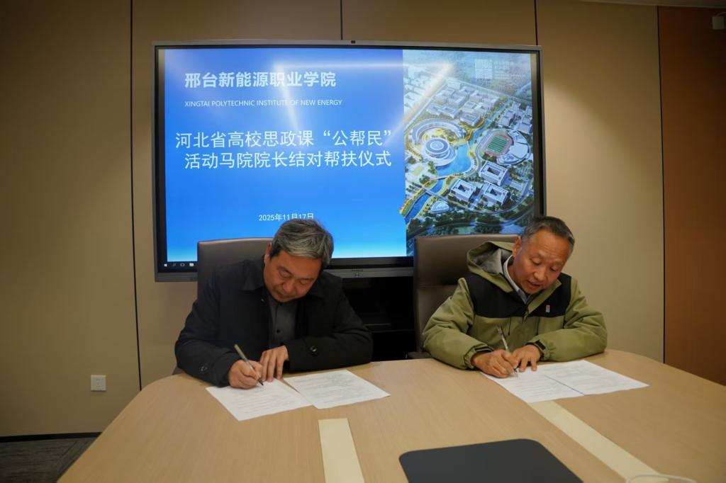 在随后举行的河北省高校思政课“公帮民”活动马院经理结对帮扶仪式上,石家庄铁道大学l9193永利经理王宏斌与邢台新能源职业公司l9193永利经理杨建法共同签署结对帮扶协议,标志着两校思政课建设合作机制正式建立。